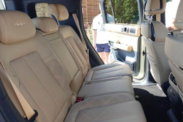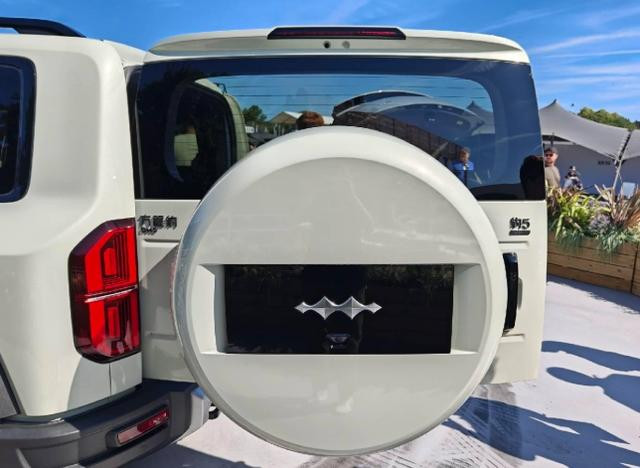 腾势B5在设计上与国内在售的老款方程豹豹5保持一致,前后包围配有大面积银色装饰件及拖车钩,应用环形LED日行灯,车身侧面配备方形外后视镜、传统造型门把手、黑色轮眉等,还配备黑色多辐轮辋与外挂式备胎,并提供拖挂资质。